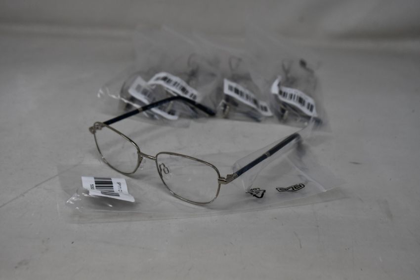 Five pairs of women's Palazzo SP11 C1 50 - 16 -130 silver metal glasses frames with blue sparkle arms.