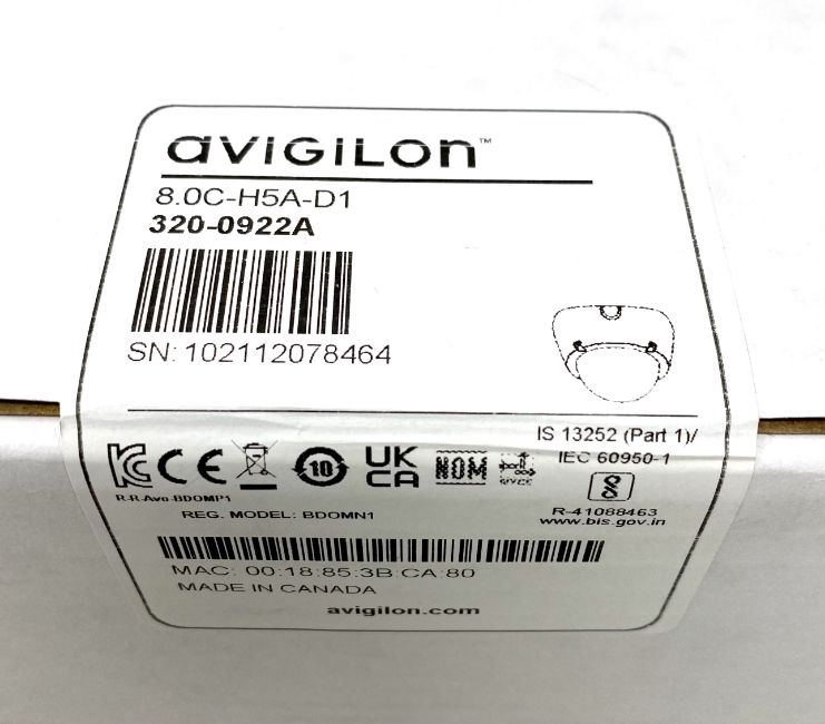 A boxed as new Avigilon 8.0C-H5A-D1 Indoor Dome Camera (Box sealed).