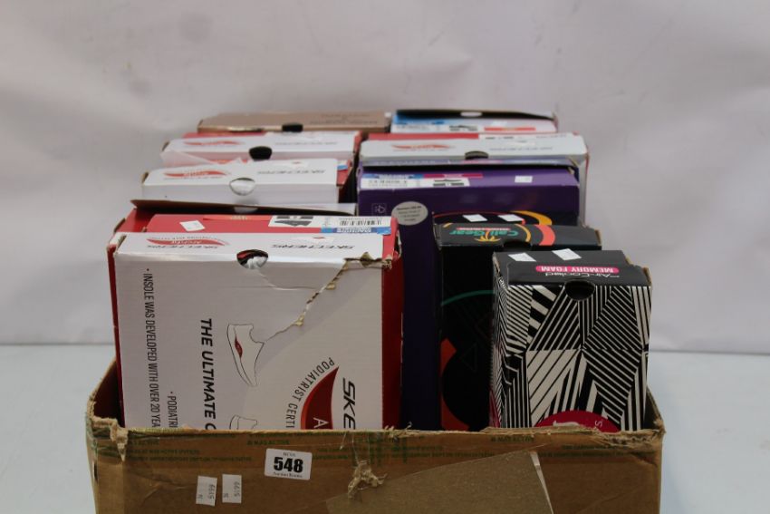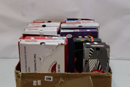 Eight pairs of Sketchers trainers in assorted styles and sizes to include Arch Fit, Mark Nason Los Angeles X, Flex Appeasl 3.0, and a pair of Sketcher Cali Gear water friendly flip flops and a pair of women's sketchers Cleo Sport slip on.