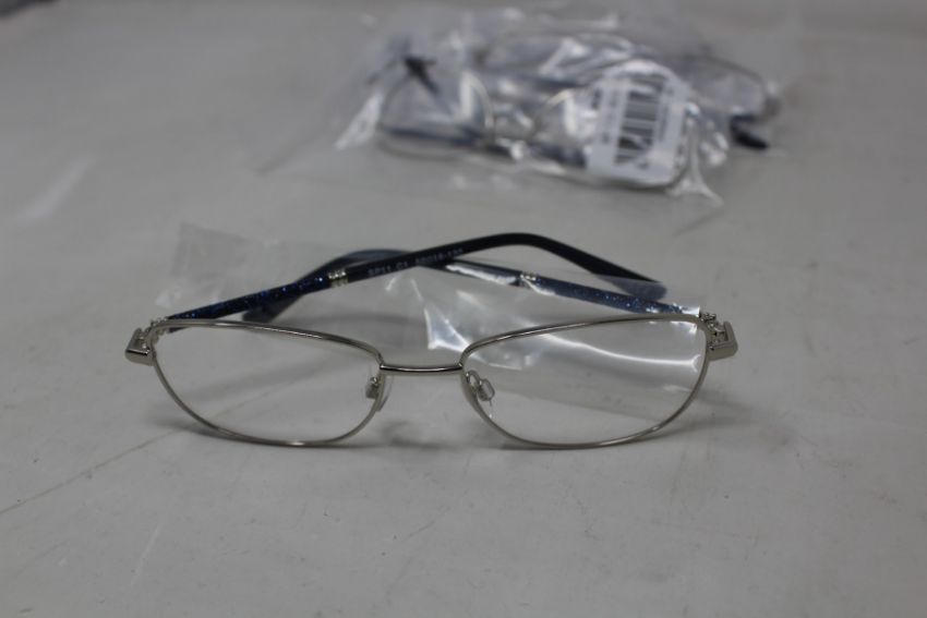 Five pairs of women's Palazzo SP11 C1 50 - 16 -130 silver metal glasses frames with blue sparkle arms.