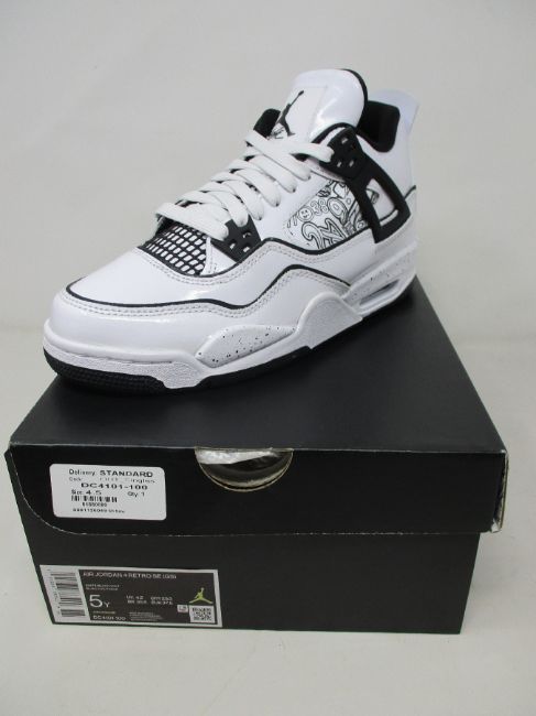 A pair of boxed as new Nike Air Jordan 4 Retro GS ‘DIY’ in black/white (5Y).