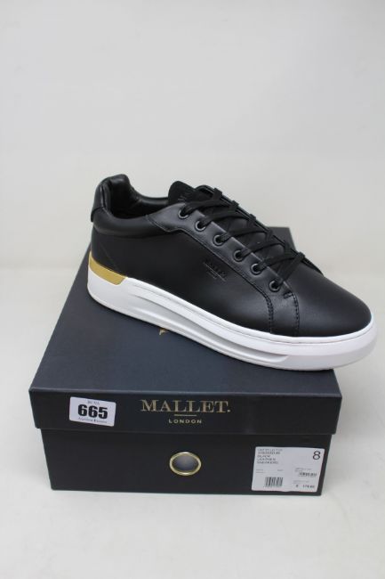 A pair of as new Mallet London GFTR Lo Top Sneakers in Black Leather (Size 8).