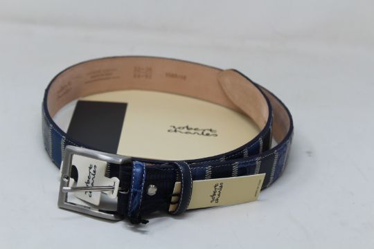 Seventeen men's as new Robert Charles Leather Patchwork Belts (7 blue, 10 brown, various sizes).