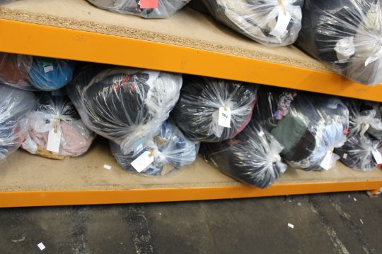 Twelve bags of assorted clothing and related items.