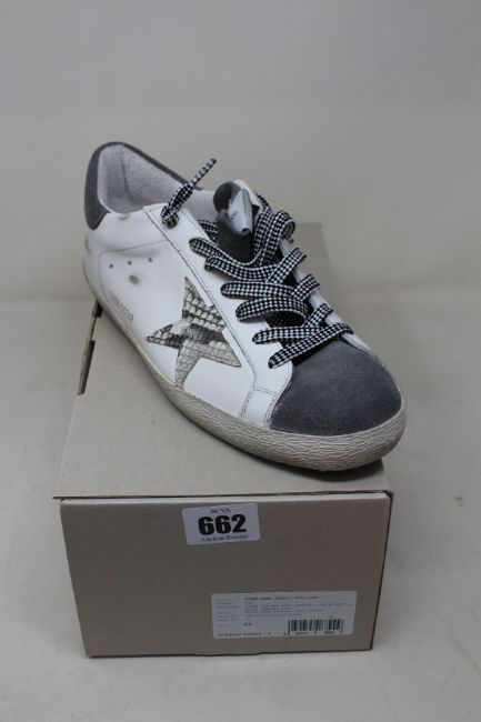 A pair of as new Golden Goose Super-Star Classic with List sneakers in White/Grey Asphalt/Grey Python (Size 42).