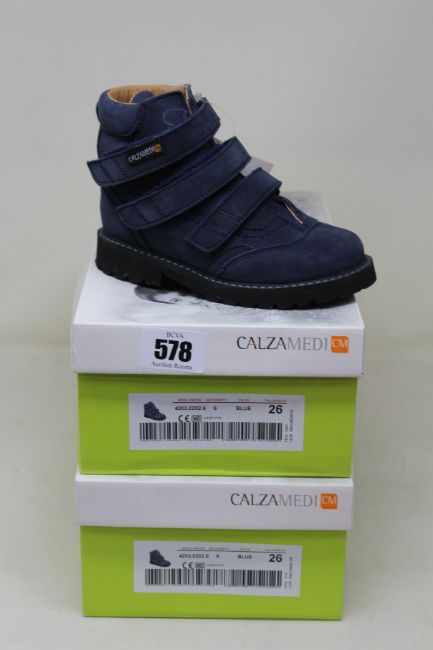 Two pairs of children's boxed as new Calzamedi boots 4203:0202 in blue (EU 26 W 6).