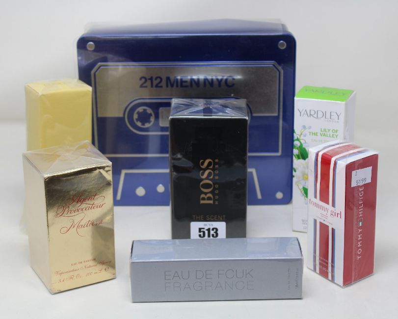 Six assorted parfum/eau de toilette to include Hugo Boss The Scent (100ml), Tommy Girl (50ml), Yardley Lily Of The Valley (125ml), FCUK Fragrance, Agent Provocateur Maitresse (100ml), Clinique Aromatics Elixir (100ml) and one Carolina Herrera 212 Men NYC duo gift set.