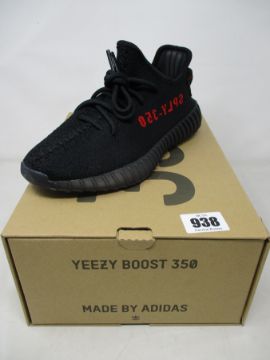 A pair of boxed as new Adidas Yeezy Boost 350 V2 in black/red (UK 5).