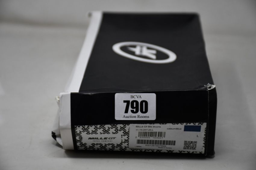 A pair of as new Assos Mille GT Bib shorts in Caleum Blue (Size M).