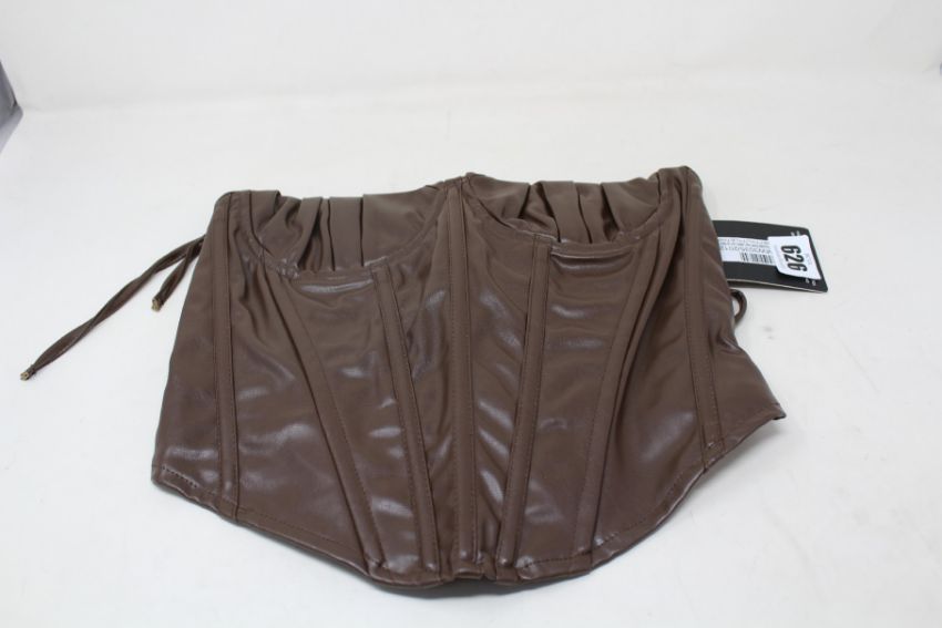 Forty eight as new Pretty Little Thing shape chocolate brown faux leather corset tops.