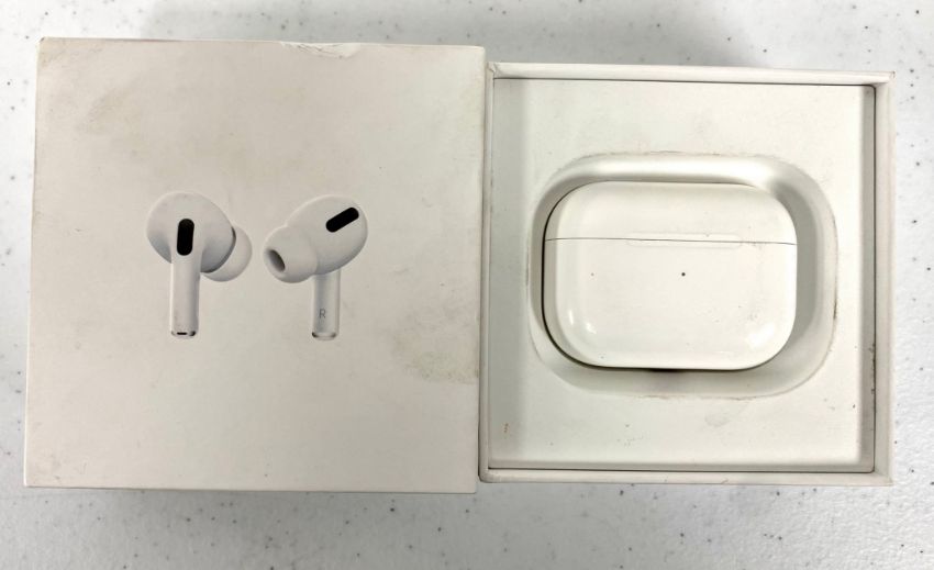 A pre-owned pair of Apple Airpods Pro (A2083+A2084) with MagSafe Charging Case (A2190) (Some cosmetic marks to Airpods and case. Boxed).