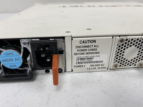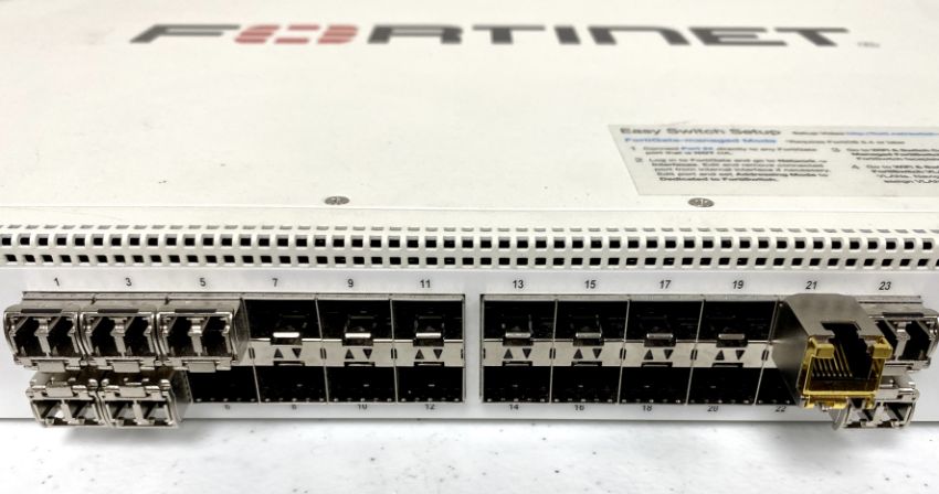 A pre-owned Fortinet FortiSwitch 1024D 1U Switch with eight transceivers (Tested, working) (No box or other items included).
