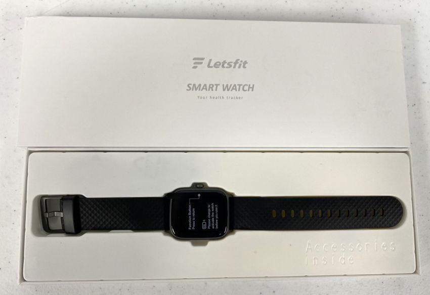 Ten boxed as new Letsfit EW1 Smart Watches in Black/Grey (Boxes sealed).