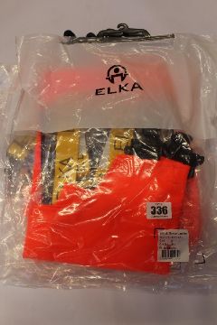 Four as new ELKA 177302J Junior Bib & Brace Trousers in fluorescent orange and navy (Sizes 10 x 1, 8 x 2 and 6 x 1).