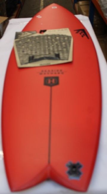 A Firewire Sunday Machado Helium 2 Red Futures Surfboard (NOTE: Item has some damage to the deck of the board, viewing is advised).