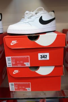Two pairs of boxed as new Nike Court Borough Low 2 (GS) in black and white (UK 5/5.5Y).