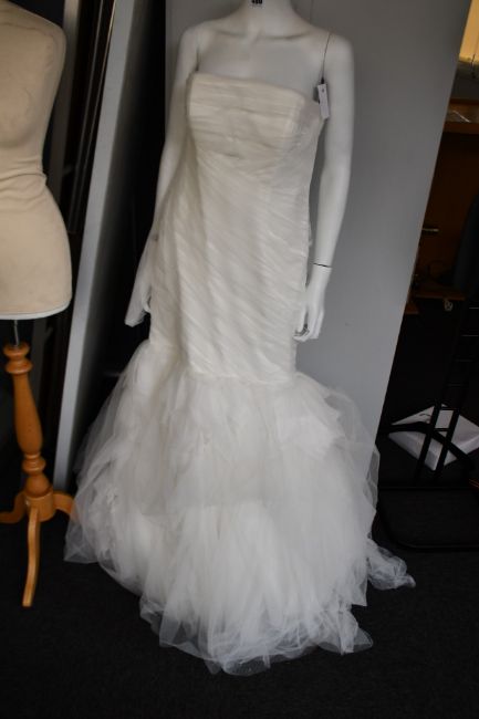 An as new Vera Wang Bride Laurence strapless fit and flare wedding dress with open back (UK 18) (Collection only).