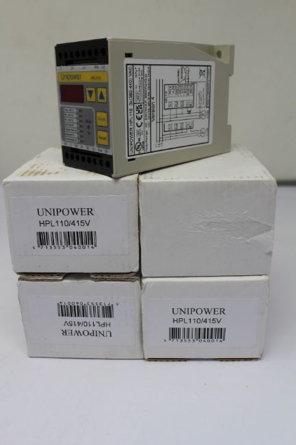 Four boxed as new Unipower HPL110/415V Motor Load Monitors (Version 4).