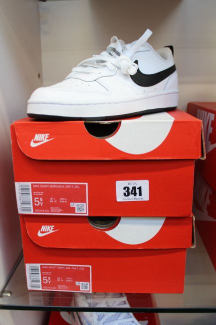 Two pairs of boxed as new Nike Court Borough Low 2 (GS) in black and white (UK 5/5.5Y).