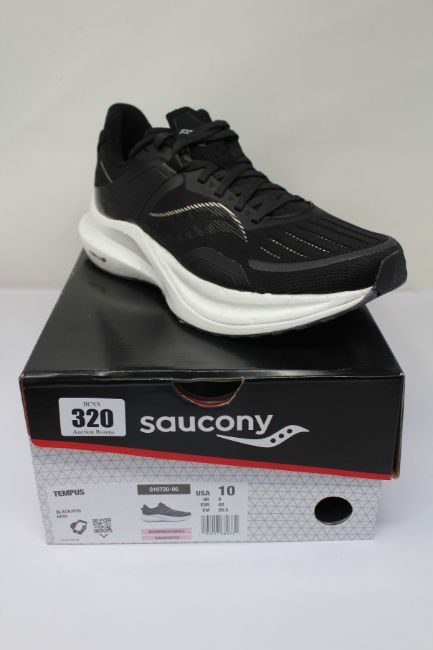 A pair of women's boxed as new Saucony Tempus Running Shoes in black and white (UK 8).