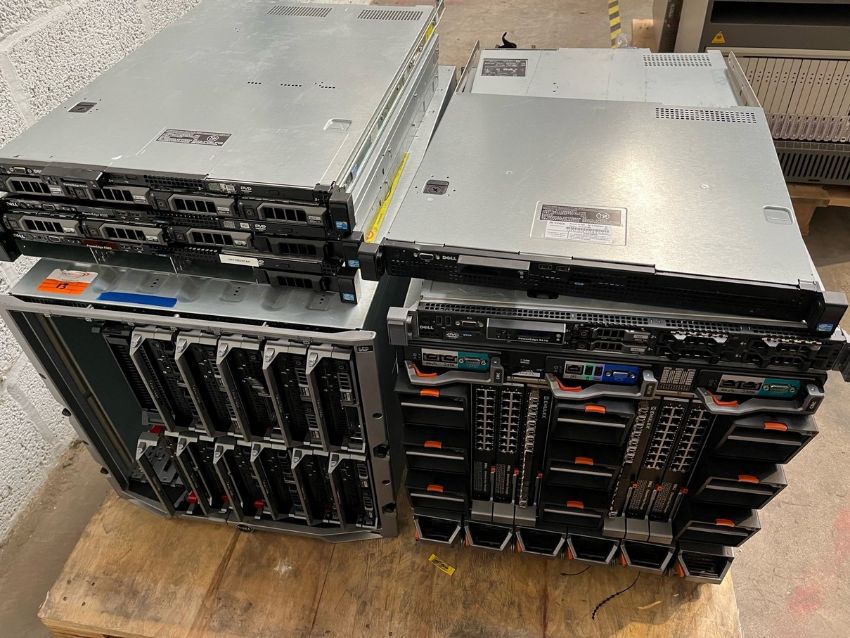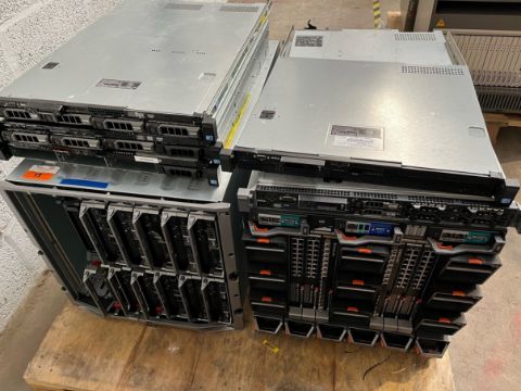 COLLECTION ONLY: Seven pre-owned Dell server items - 2 x PowerEdge M1000e Blade Enclosures with various modules, 1 x PowerEdge R610 1U Rack Server, 2 x PowerEdge R320 1U Rack Server, 1 x PowerEdge R610 1U Rack Server and 1 x PowerEdge R210 1U Rack Server (All items removed from a working office environment. No drives or licences included. Sold as seen).