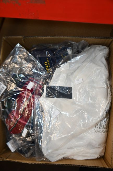 Fifteen as new Polo Ralph Lauren clothing items to include a pair of Hawaiian Shorts, a Multi Reversible Bucket Hat and other related items.