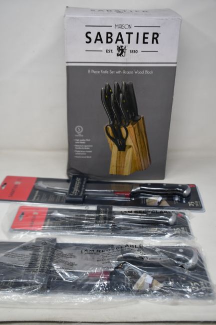 Seven assorted Sabatier knives and a Sabatier 8-piece knife wooden block (Over 18s only).
