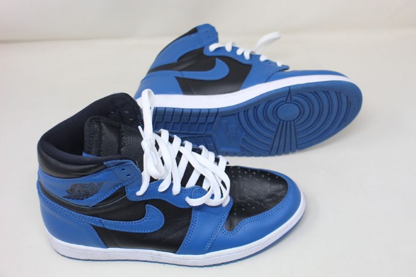A pair of pre-owned Nike Air Jordan 1 high trainers in dark marina blue (UK 8) (No box).