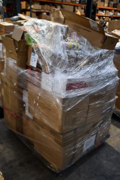 A pallet of assorted as new miscellaneous items to include wine glass cork cage, ice cube trays, under shelf baskets and horse relief creams.