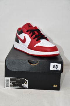 A pair of boxed as new Nike Air Jordan 1 Low (GS) in white/gym red-black (UK 5.5/6Y).