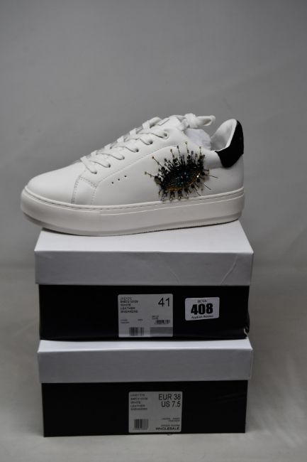 Two pairs of women's boxed as new Kurt Geiger London Laney Eye Sneakers in white (Both EU 41).