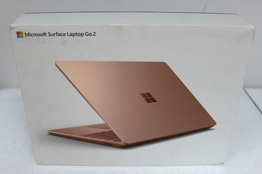 A pre-owned Microsoft Surface Laptop Go 2 12.4" Touchscreen Laptop in Sandstone with Intel Core i5 11th Gen, 8GB Go RAM, 128GB SSD running Windows 11 Home (Grade A. UK power supply included. Boxed, some cosmetic damage to box) (M/N: 2013 KN8-00050 S/N:0B34383221137H EAN: 889842916201).
