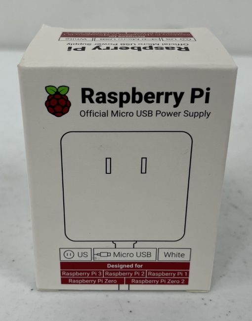 One hundred boxed as new Raspberry Pi Micro USB US 2-pin Power Supplies in White (EAN: 617588405730) (Grade A+).