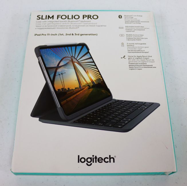 A boxed as new Logitech Slim Folio Pro for iPad Pro 11-inch (1st, 2nd, 3rd and 4th gen) in Graphite (EAN: 5099206090637) (Grade A+, box opened, some damage to box).