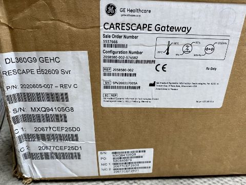 COLLECTION ONLY: A boxed as new GE Carescape Gateway DL360G9 Server 2020605-007 with licence activation and software (Damaged box).