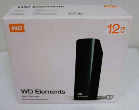 A boxed as new Western Digital WD Elements 12TB Desktop External Hard Drive (Grade A+. Box sealed, slight damage to box) (EAN: 718037872155).