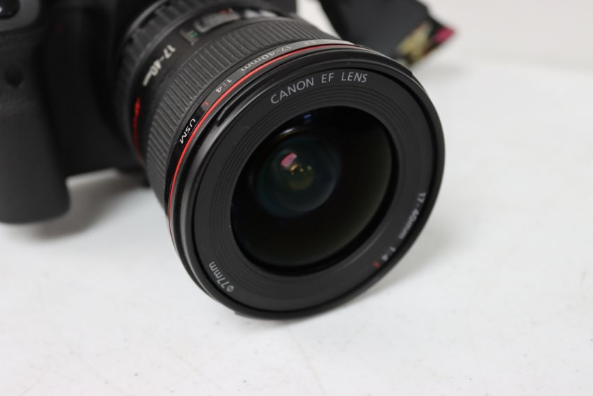 A pre-owned Canon EOS 6D Mark II Digital SLR Camera with a Canon EF 17-40mm f/4L USM Lens , three Canon LP-E6 Battery Packs and a Acuvar Camera Bag (No strap) (Camera, lens and battery - Grade B. Tested, working. No charger included).