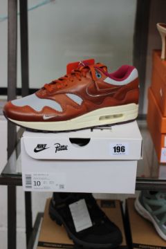 A pair of boxed as new Nike Air Max 1 Patta 'Waves' in Dark Russet (UK 9).