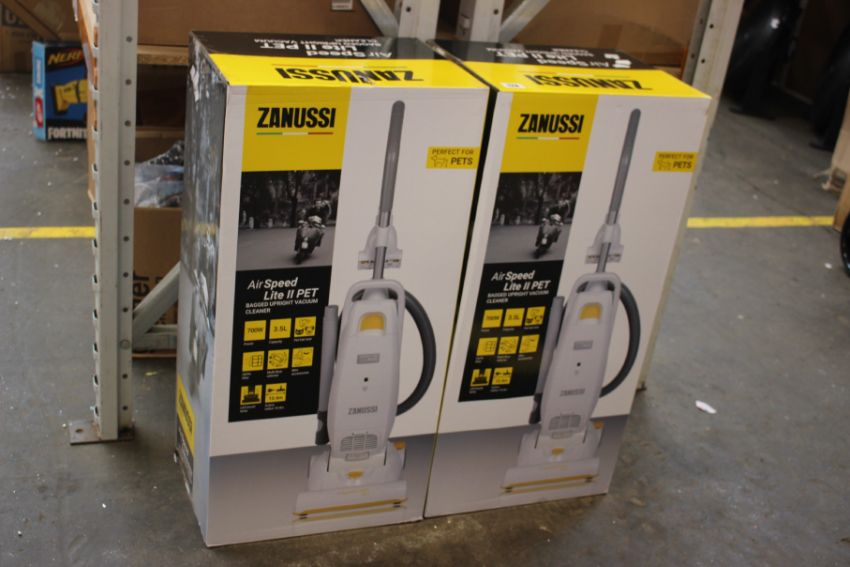 Two boxed as new Zanussi Air Speed Lite II PET (Bagged Upright Vacuum Cleaners).