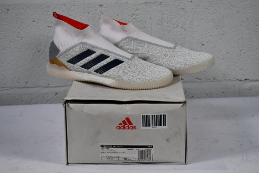 A pair of Adidas Predator 19+TR CO unisex football trainers (UK 8-1/2) (Outer box damaged)