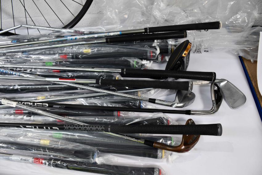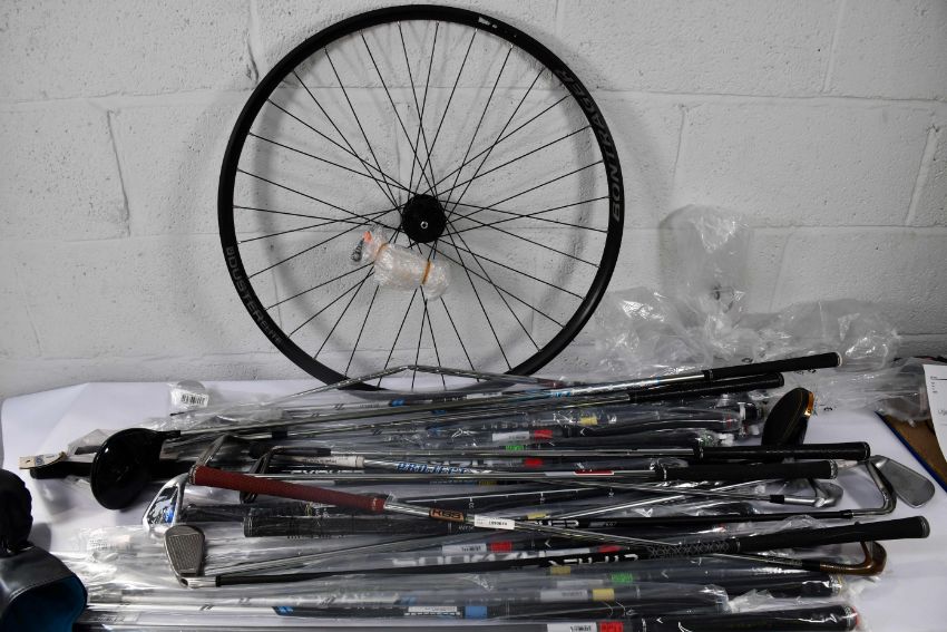 Miscellaneous sports related items to include golf clubs, shafts and umbrellas