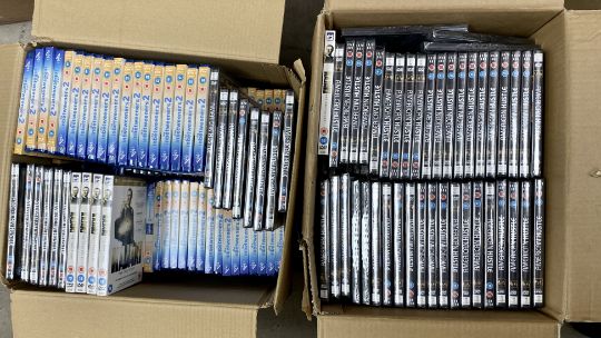 A large quantity of as new DVDs and Blu-Ray disks to include The Inbetweeners 2, American Hustle and Kajaki (Approximately 220 units, packaging sealed).