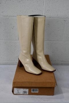 A pair of Alohas - East Off White/Ivory Knee High Leather Boots - UK 5
