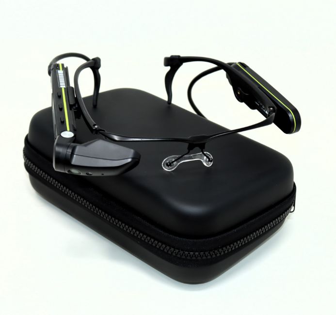 A pre-owned pair of Vuzix M300 AR Smart Glasses and a pair of Vuzix protective frames with cases in a carry bag (Untested, sold as seen).