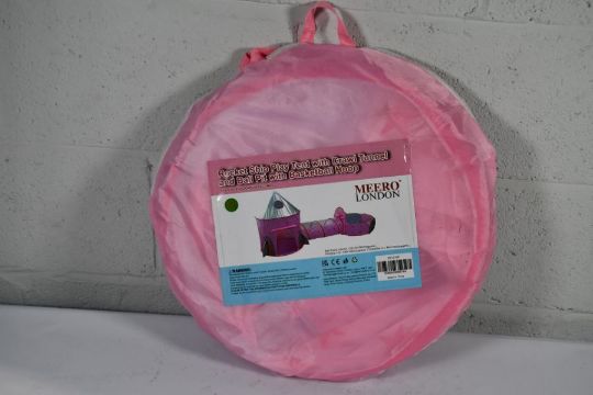 Eight children's pop-up 3-in-1 play tents, house, tunnel and baby kids ball pit pool indoor/outdoor.
