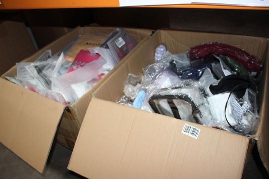 Two Boxes of as new clothing and related items to include Airydress, Backpacks and Mei Yika collared dress (Approx. 80 items)