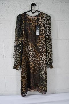 An as new Luisa Cerano Leopard Silk Chiffon Dress Brown, Size 34, 728159/2492