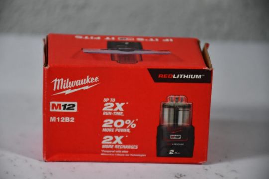 Six boxed as new Milwaukee M12B2 M12 12v 2Ah Red Lithium-Ion Batteries.