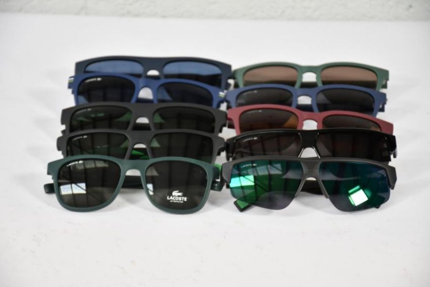 Ten assorted pre-owned Lacoste sunglasses to include L987S, L6003S and others (Good Condition).