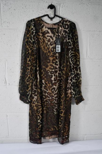 An as new Luisa Cerano Leopard Silk Chiffon Dress Brown, Size 38, 728159/2492